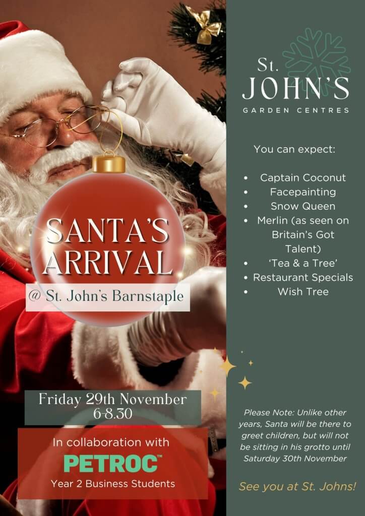 See Santa’s arrival at St. John’s Barnstaple this year on the 29th of November. Expect an array of festive entertainment from ice queens to magicians as Santa makes his way from Bay View Nursery, pulled by horse and cart, all the way to St. John’s Barnstaple!